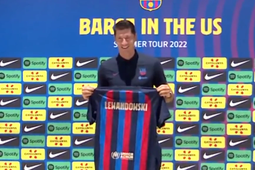 Priča o transferu Roberta Levandovskog iz Bajerna u Barselonu je potrajala, ali je danas poljski napadač i zvanično predstavljen. Barsa je trenutno na turneji u Sjedinjenim Američkim Državama, a Levandovski je gledao i test meč u kojem su njegovi novi saigrači pobedili Inter Majami sa 6:0.