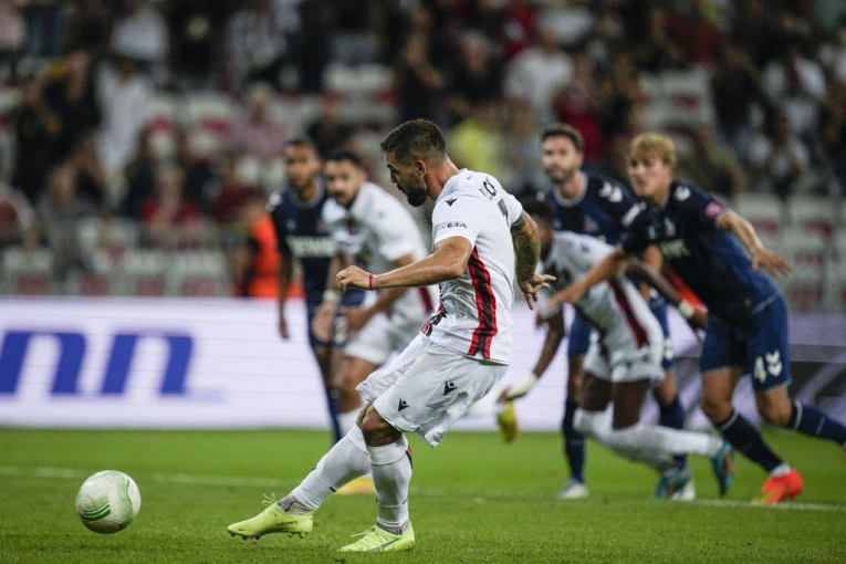 Prvi napadač kluba sa Rivijere povređen je završio meč Lige 1 sa Ajačijom, na kome je bio strelac odlučujućeg pogotka, zbog čega ga nema među fudbalerima koje je trener Lusijan Favr doveo u Beograd na megdan crno-belima.