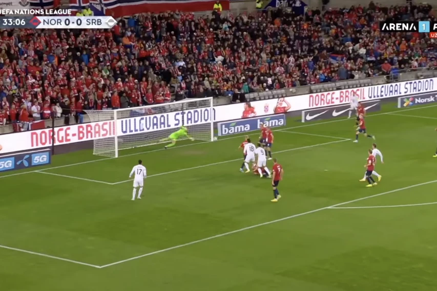 Vlahoviću se baš ne da, kako ovo nije gol? Ovako je golman Norvežana sprečio vođstvo Srbije! (VIDEO)