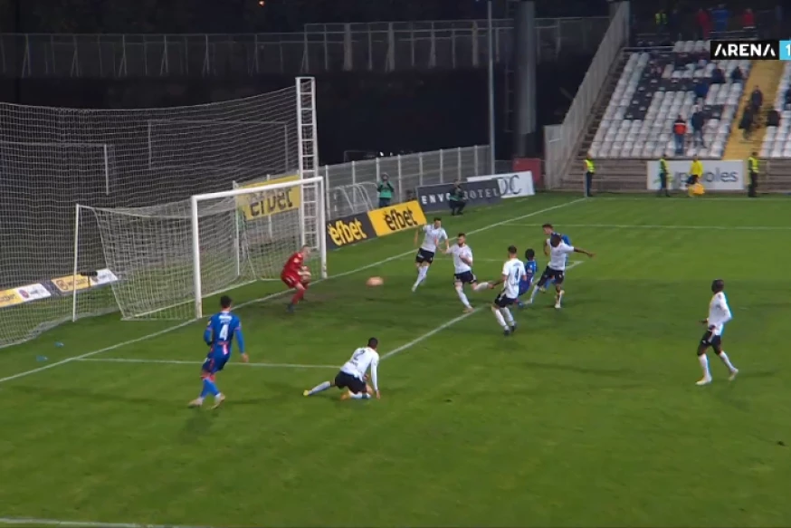 Kings Kangva je na oko 20 metara oteo loptu igraču Čukaričkog, dodao je u sredinu do Gelora Kange, a ovaj levo Mirku Ivaniću, koji je utrčao u šesnaesterac, a onda je vratio u centar.