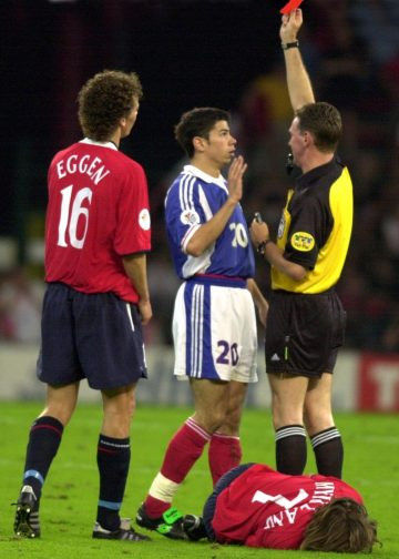 Meč koji je obeležio sjajan pogodak petom Save Miloševića i jedno od najbržih isključenja u fudbalskoj istoriji, kada je Škot Hju Dalas pokazao je crveni karton Mateji Kežmanu za grub start iza leđa protivnika posle svega 34 sekunde provedene na terenu. Srećom za „plave“, igrali su sa igračem manje samo još pet minuta, pa su sačuvali vođstvo koje ih je odvelo u nokaut fazu EP na duel sa Holanđanima (6:1).