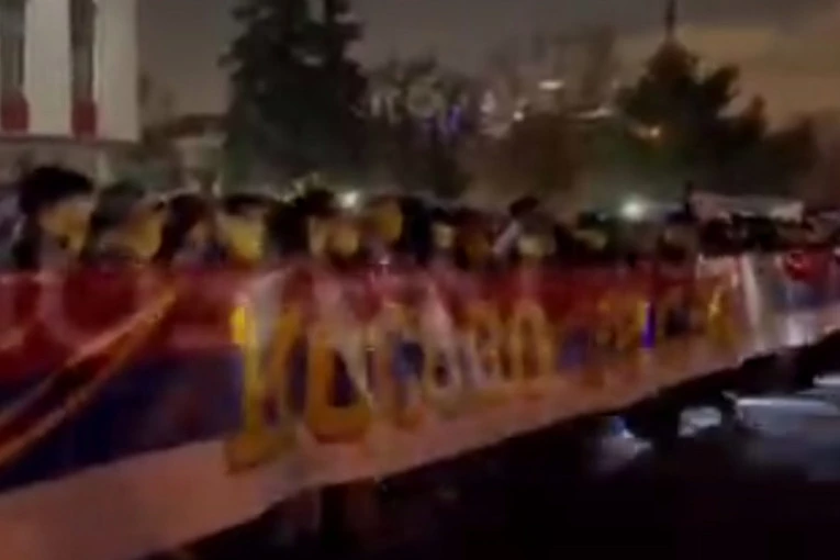 Oni su istakli transparent "Kosovo je Srbija", a okupili su se, kako kažu, sa ciljem da "podrže srpsku braću u borbi za očuvanje svoje zemlje".