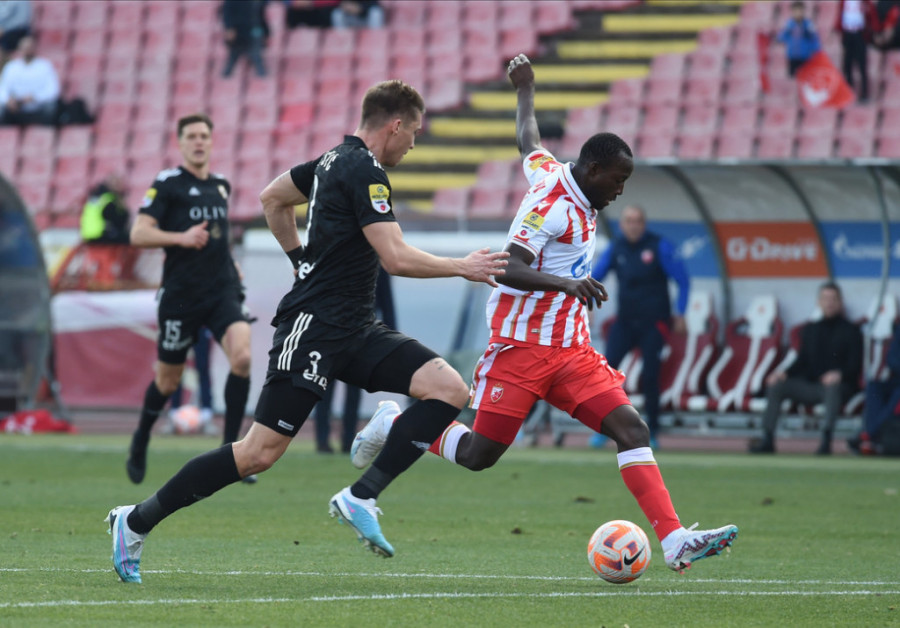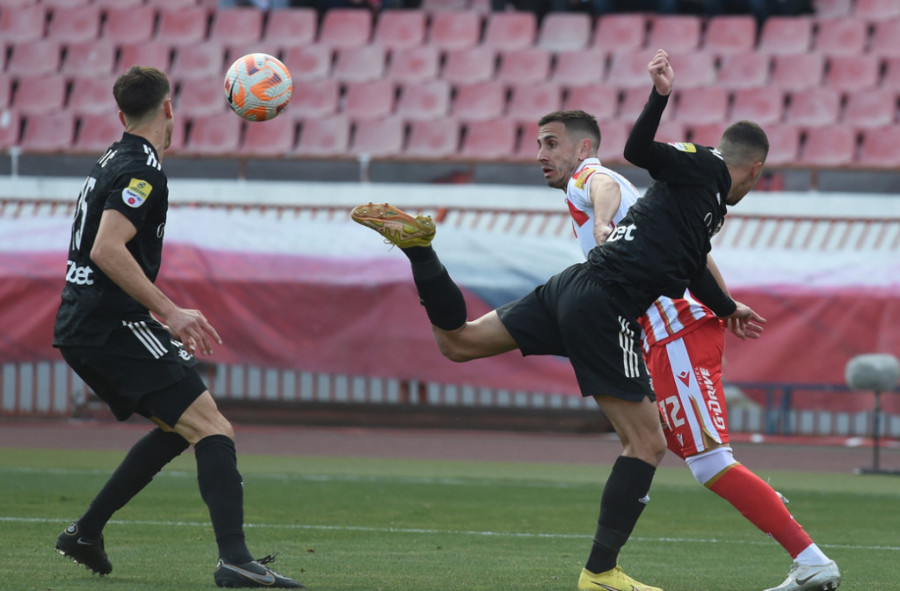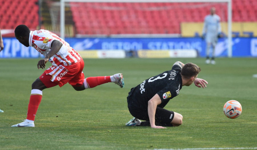 47. minut - Docić koji je preuzeo kapitensku traku centrira, ali igrači Zvezde otklanjaju opasnost.