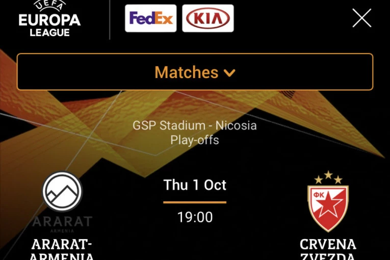 Odlukom UEFA, utakmica između Ararata i Crvene zvezde u @EuropaLeague biće odigrana u četvrtak od 19 časova po srpskom vremenu na GSP stadionu u Nikoziji.