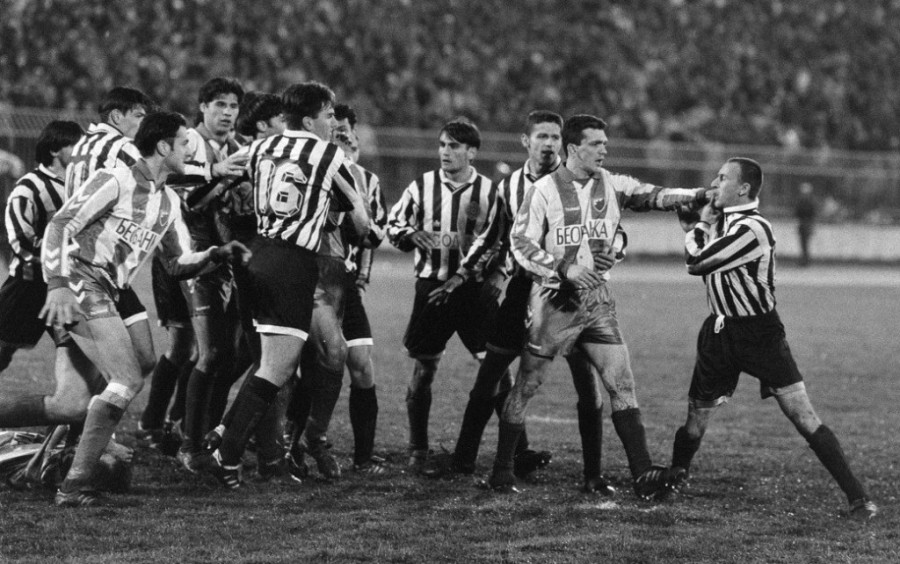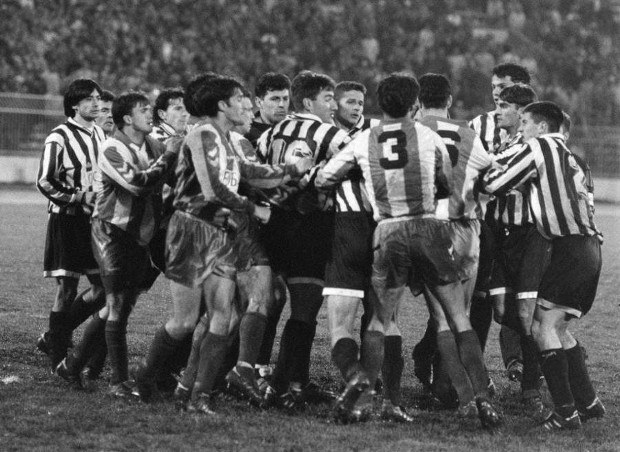 Padala je tog dana u Beogradu prava jesenja kiša… Kako je utakmica odmicala teren na Partizanovom stadionu postajao je sve teži za igru, što je dodatno uticalo da se tenzija podigne do tačke ključanja i eksplozije koja je usledila kada su se žestoko potukli Zoran Bata Mirković i Ante Drobnjak, zbog čega su dobili direktne crvene kartone.