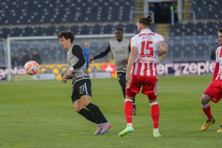 32. MINUT - Žuti karton za Markovića posle starta nad Pešićem. Uklizava oštro na napadača crveno-belih. Trifković pokazuje karton, a Marković sada mora da pazi.