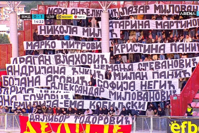 Najvatreniji navijači Crvene zvezde na utakmici protiv Voždovca uputili polednji pozdrav stradalima u dva velika masakra u Srbiji