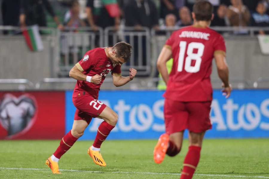 Fudbalska reprezentacija Srbije odigrala je 1:1 sa Bugarima u utakmici trećeg kola kvalifikacija za Evropsko prvenstvo u Nemačkoj. Posle "tesne" pobede u prijateljskom meču sa Jordanom i opomene, upisan je remi, a strelac za veliki bod bio je Darko Lazović u sudijskoj nadoknadi koja je trajala šest minuta. Vezista Verone je inače ušao u 71. minutu, umesto Andrije Živkovića.