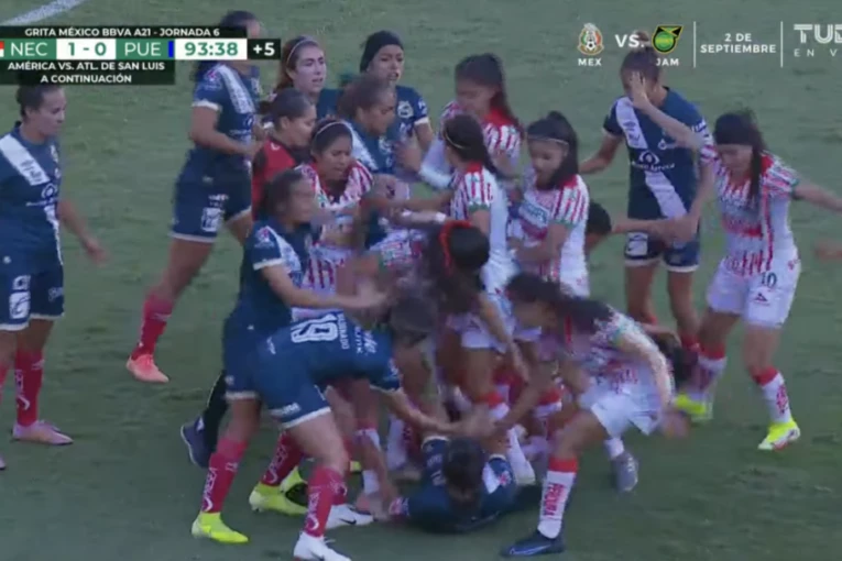 Nesvakidašnje scene dolaze nam iz Meksika, sa fudbalskog meča Nekakse i Puebla. Neizvestan rezultat, poslednji minuti utakmice, velika tenzija, pa i ne bi bilo čudno varničenje na terenu, ali da se radi o muškom fudbalu.