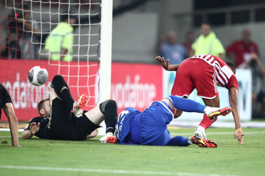 Kapiten Olimpijakosa se namestio i "raspalio" po lopti. I ovog puta nemoćan mladi golman Samurović.