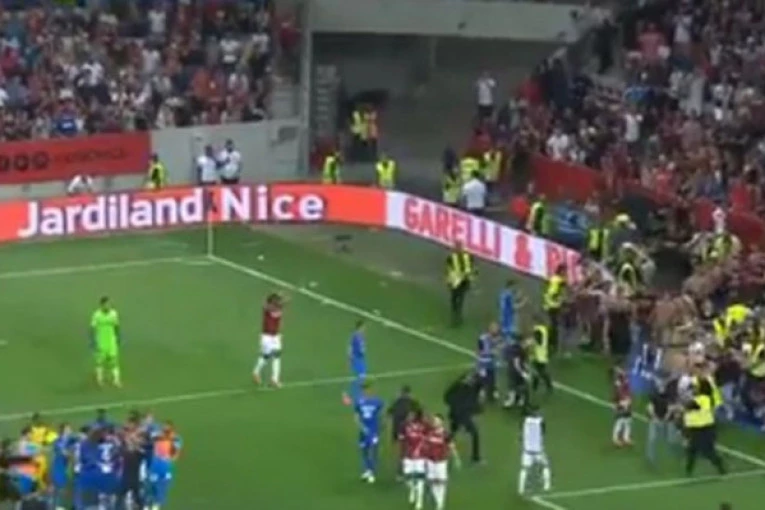 Utakmica Lige 1 između Nice i Olimpika iz Marselja je prekinuta u 76. minutu, pošto su navijači upali na teren. U tim trenucima, vodio je domaćin zahvaljujući pogotku Kaspera Dolberga.