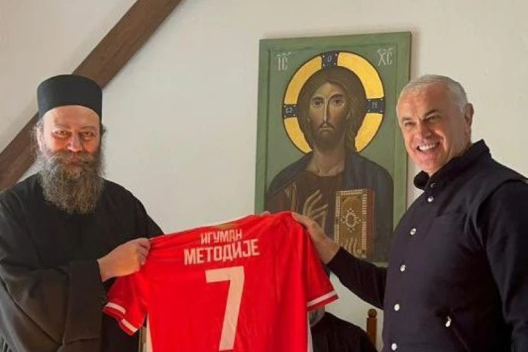 Za kraj posete, igumanu Metodiju je uručen dres sa brojem 7, a on je uzvratio knjigom "Sveti kralj Milutin".
