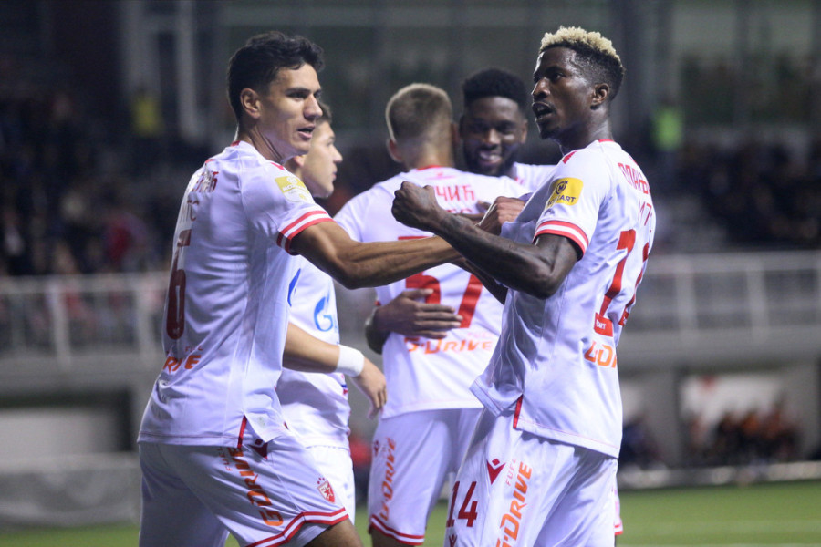 Posle poraza u Lajpcigu u utakmici Lige šampiona fudbaleri Crvene zvezde su uspeli da slave u 13. kolu Superlige. Rezultat na gostovanju IMT-u bio je 2:1, a strelci su bili Žan Filip Kraso i Piter Olajinka.