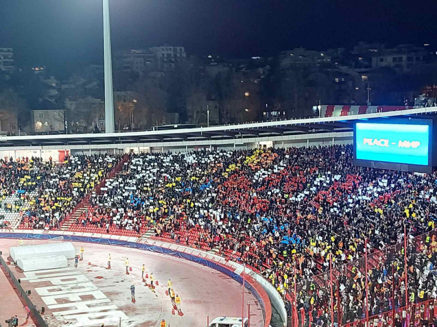 Šarenoliki kolorit na sve četiri tribine najvećeg srpskog stadiona pratio je i transparent na ogradi severa, „Publika je tvoja najluđa na svetu, niko Zvezdo nema to što imaš ti!“