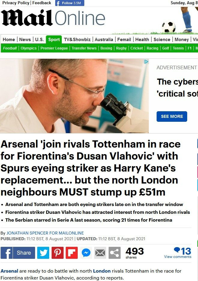 Prema pisanju britanskog Dejli mejla srpski reprezentativac Dušan Vlahović rasplamsao je rivalstvo klubova na severu Londona! Posle Totenhema i Arsenal se pridružio ovoj trci za mladim napadačem Fjorentine, koji će ovog leta gotovo izvesno napustiti Firencu.