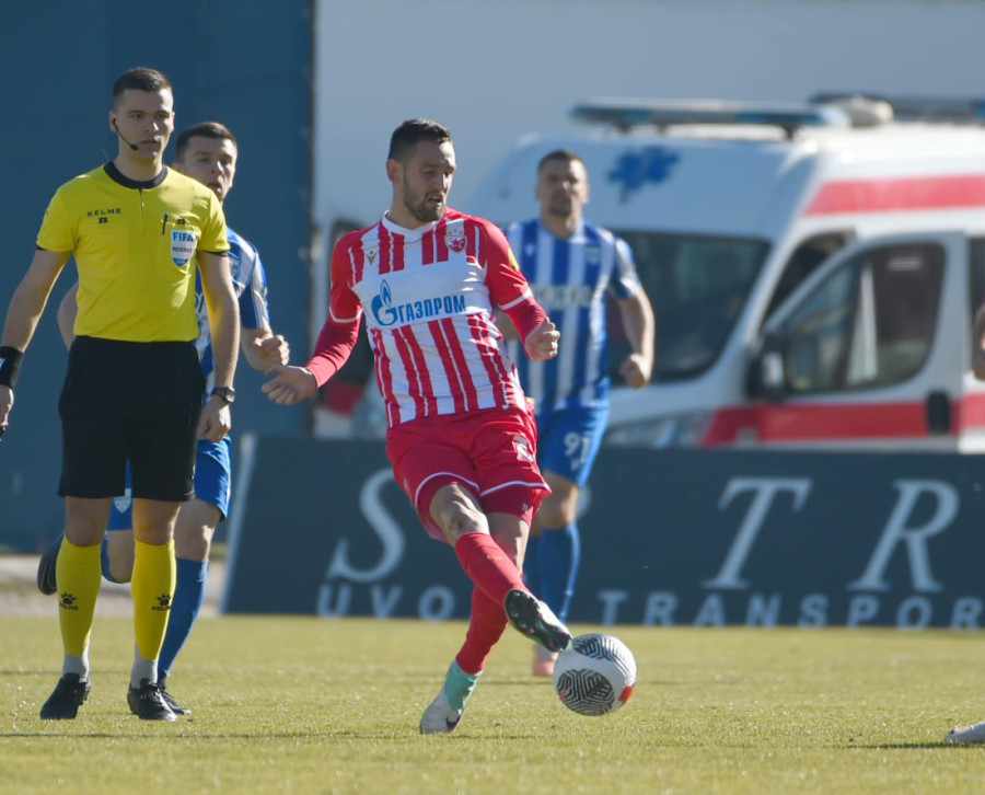 36. MINUT - Penal za Zvezdu posle gužve u kaznenom. Sremčević je vratio loptu, Điga je krenuo glavom, pa je tada i fauliran od strane Momčilovića. Domaći igrači opkolili sudiju Nikolića.