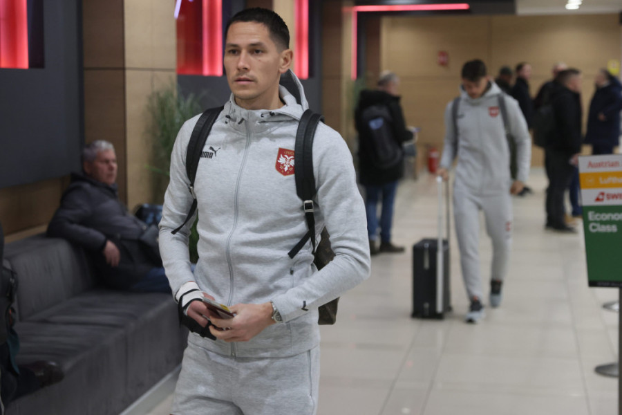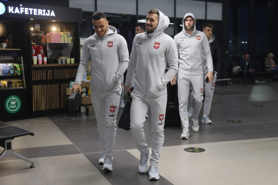 Srpski fudbaleri su predvođeni selektorom Draganom Stojkovićem Piksijem, stigli na aerodrom, a u dobrom raspoloženju bili su svi do jednog.