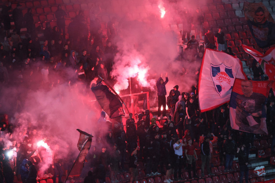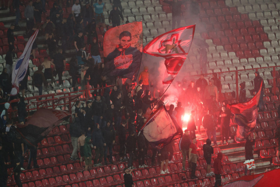 5. minut - Sa tribina se čuje pesma navijača "Zvezda je šampion, sve je gotovo..."