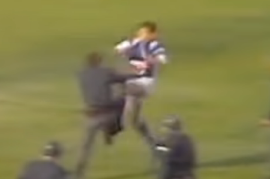 Usledila je i masovna tuča na tribini, a jedan detalj je postao "zaštitni znak" ovog haosa. Zvonimir Boban se na sredini zaleteo i nogom šutnuo miliicionera Refika Ahmetovića. Tadašnji napad na predstavnika organa reda, Boban je opisao kao "reakciju na jednu veliku nepravdu".