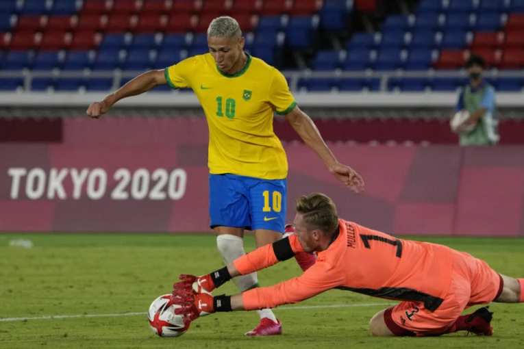 Olimpijska reprezentacija Nemačke izbegla je katastrofalan poraz u derbiju prvog kola olimpijskog fudbalskog turnira u Tokiju od odgovarajuće Brazila, jer je južnoamerička selekcija nakon 3:0 u prvih pola sata promašila jedan penal i barem desetak prilika pred golom fenomenealnog Florijana Milera.Sve je ličilo na to da će Nemcima biti ispostavljen račun za 7:1 sa Mundijala u Brazilu 2014. godine, ali igrači u žutim dresovima nisu imali dovoljno pribranih napadača da kod poslednjeg šuta pretvore čiste prilike u pogotke.