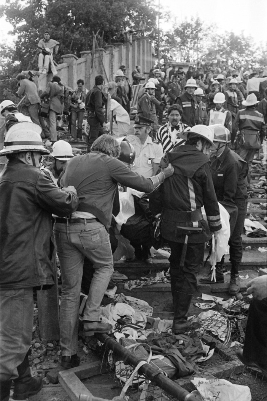 Navijači engleskog kluba tada su probili ogradu i saterali Italijane u kraj tribine što je prouzrokovalo pad zida visokog trim metra. Čak 39 navijača je izgubilo život, neki od pada, a neki u obračunima noževima i kamenicama, odnosno u stampedu koji je nastao.