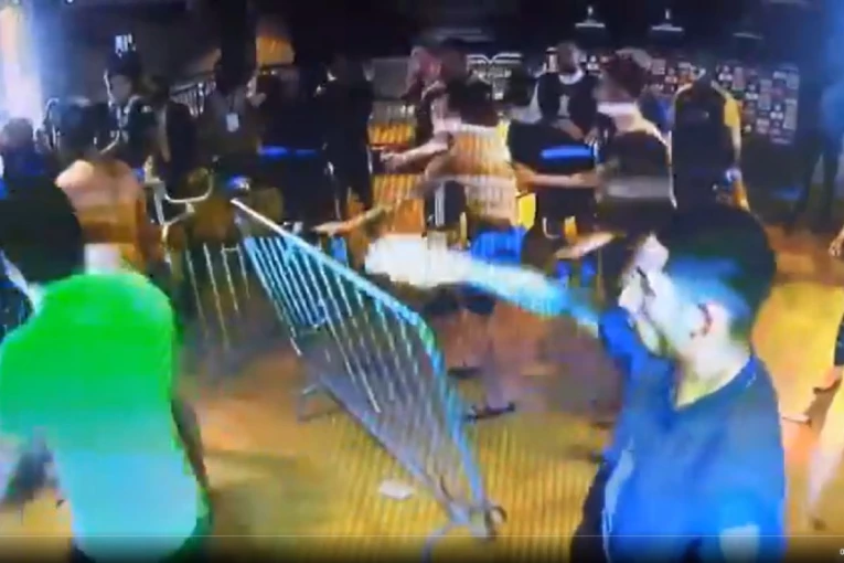Na snimku iz svlačionice se vidi kako igrači uzimaju ogradu koja služi za odvajanje novinara u miks zoni od fudbalera i napadaju pripadnike obezbeđenja i policije.