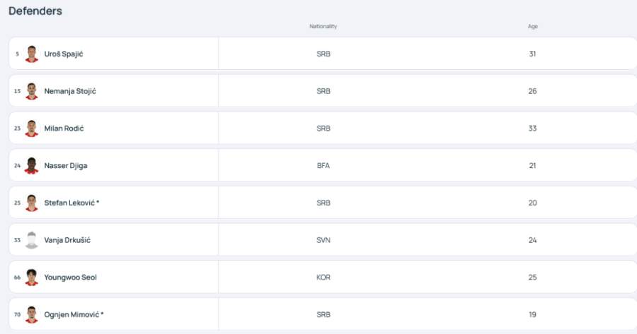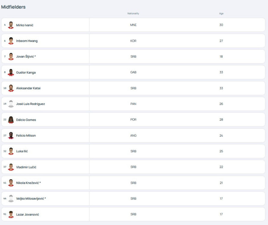 Kao što se vidi, među prijavljenim fudbalerima je i poslednje pojačanje, Drkušić koji je danas predstavljen.