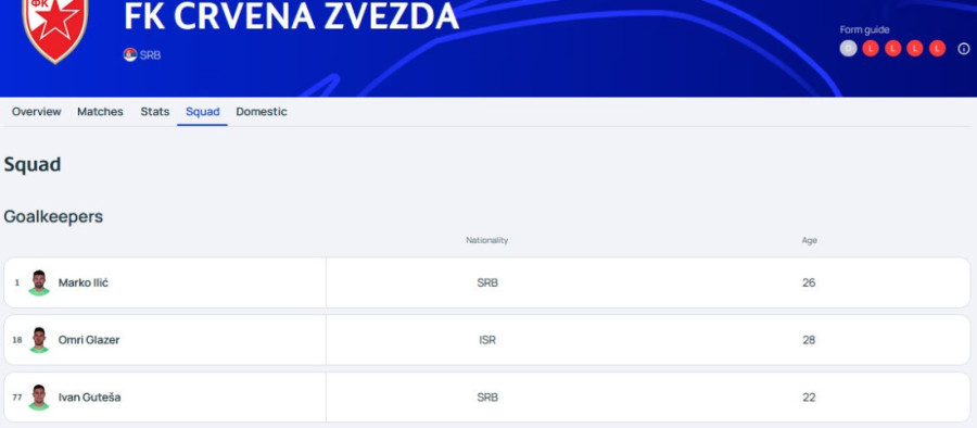 Uoči dvomeča sa timom sa severa Evrope na sajtu UEFA se pojavio spisak sa licenciranim fudbalerima za ove duele.
