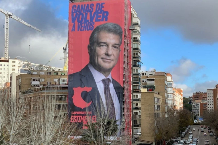 Laporta je postavio džinovski izborni baner u Madridu, na par stotina metara od stadiona Santjago Bernabeu doma najvećeg rivala njgovog kluba, sa sledećom porukom: