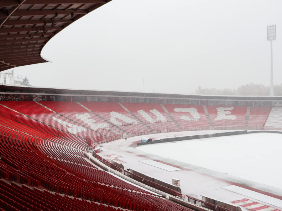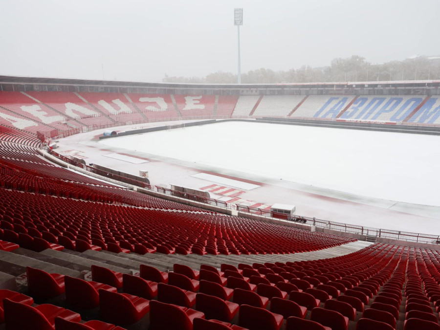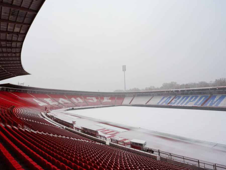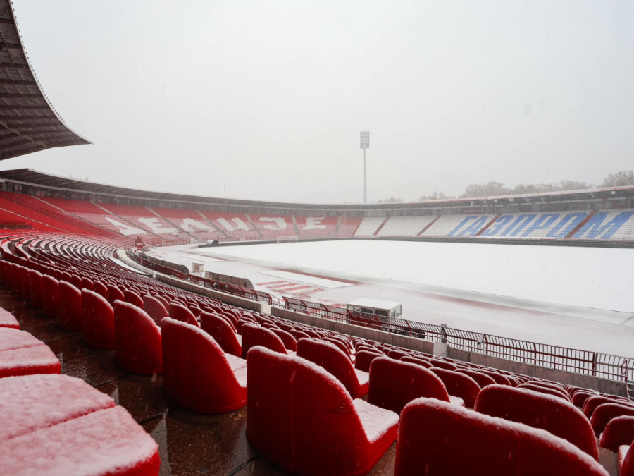 Možete i da pogledate kako izgleda staduon "Rajko Mitić" pod snegom, mada je sutrašnji meč bio planiran na stadionu "Dragan Džajić" na Ubu.