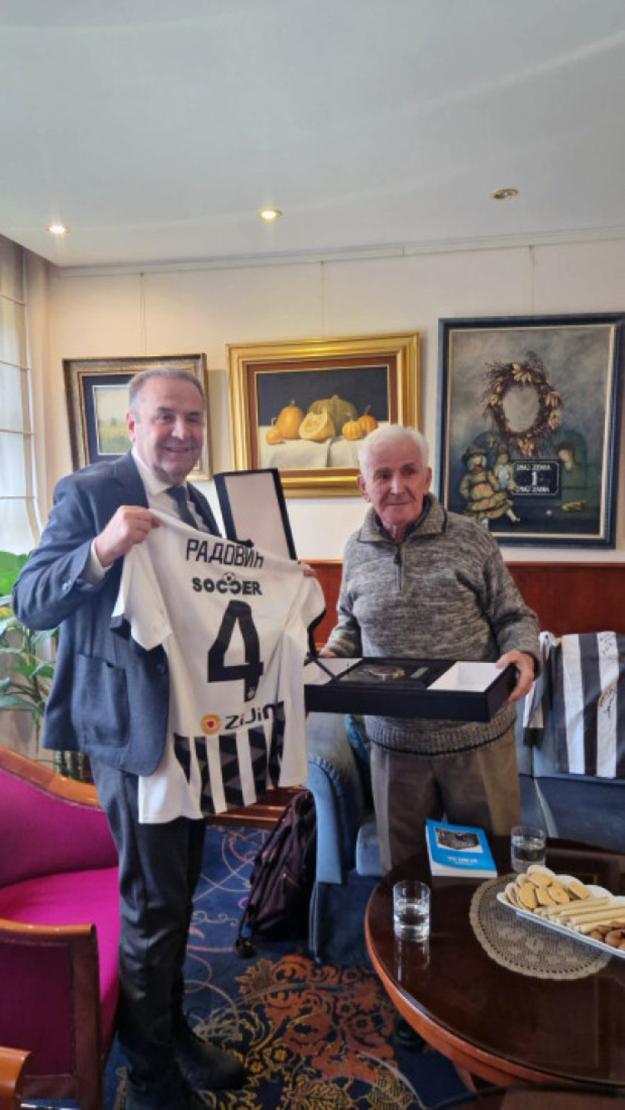 Delegacija FK Partizan koju su činili predsednik Radne grupe, Rasim Ljajić i direktor marketinga, Dragan Velanac, posetila je legendarnog prvotimca crno-belih Lazara Radovića.