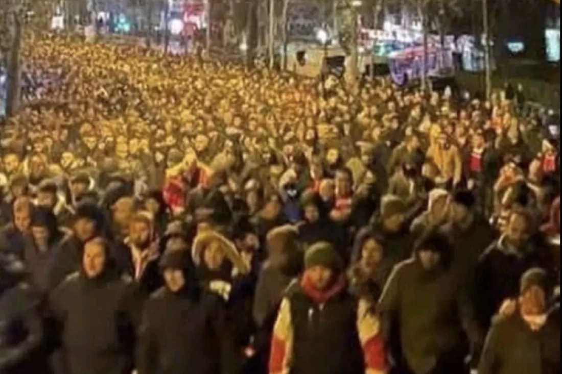 Navijači Crvene zvezde krenuli ka stadionu Jang bojsa, Švajcarci u šoku gledaju