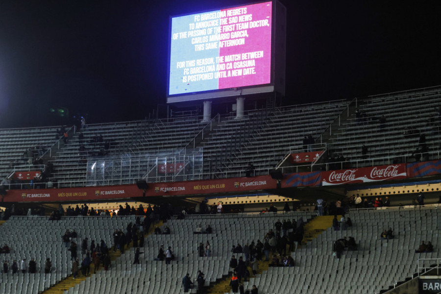 Utakmica 27. kola španske Primere između Barselone i Osasune odložena je zbog smrti šefa medicinskog tima Katalonaca Karlosa Minjara Garsije.