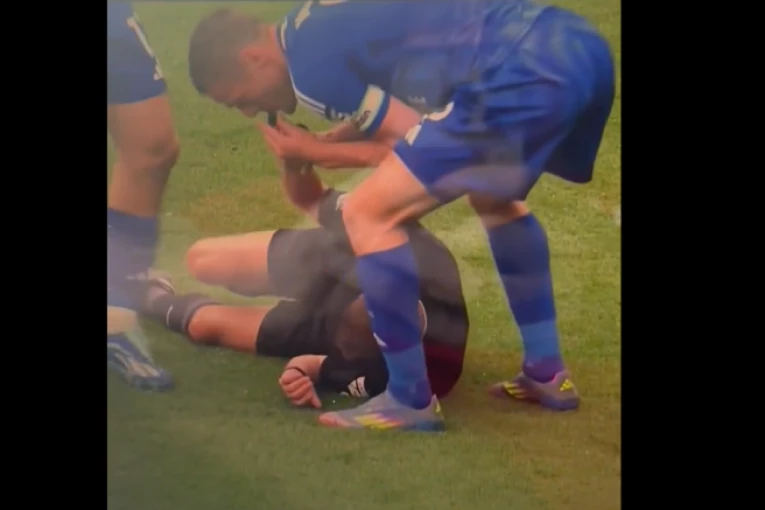 Tako je prva pomoć sudiji veoma brzo ukazana na terenu, a čitava situacija mnoge je nasmejala.