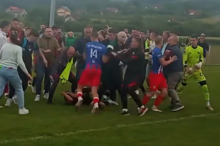 Opšta tuča na utakmici u Srbiji: Sevale pesnice na sve strane, napadnut i sudija (VIDEO)