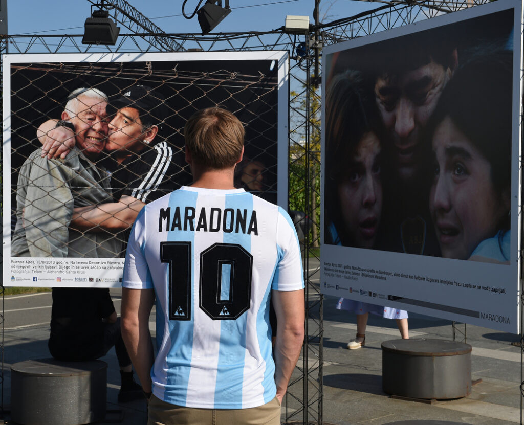 Izložba o Maradoni iz arhive Telama jedna je od 20 izložbi Beogradskog meseca fotografije, kako glasi zvanični naziv na engleskom jeziku, a počela je 8. maja i ima izložbe na otvorenom u različitim delovima prestonice Srbije.