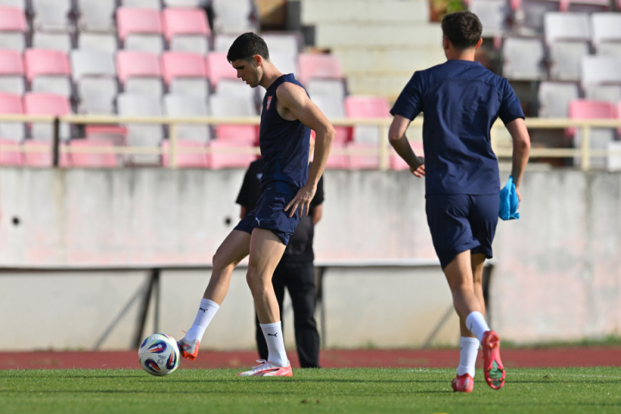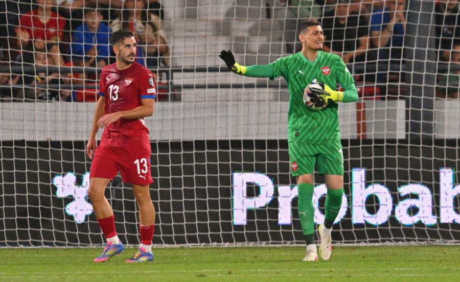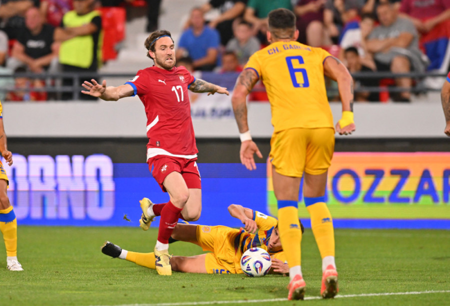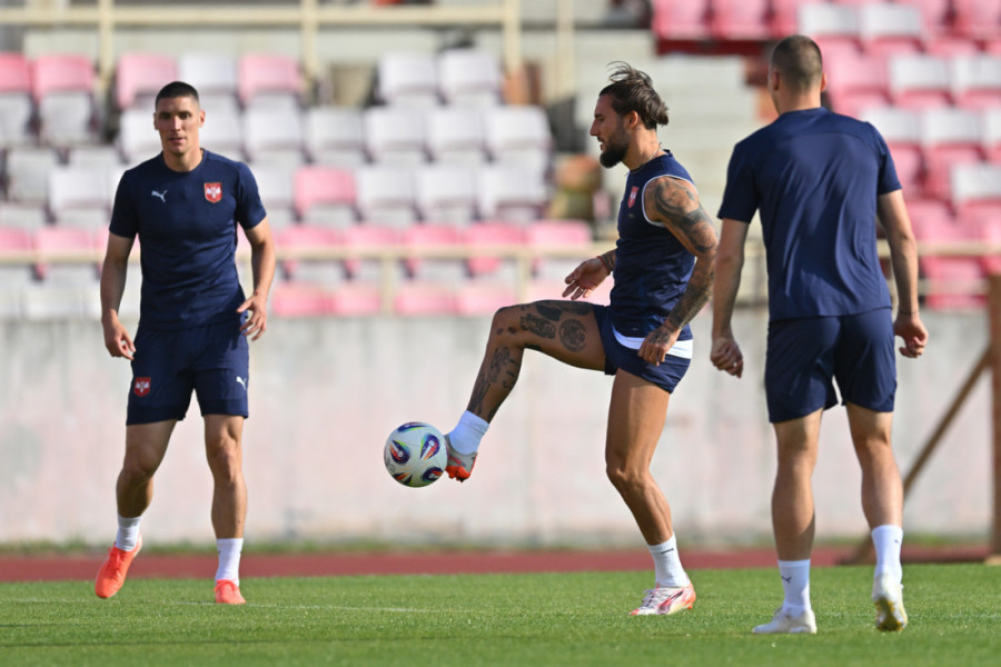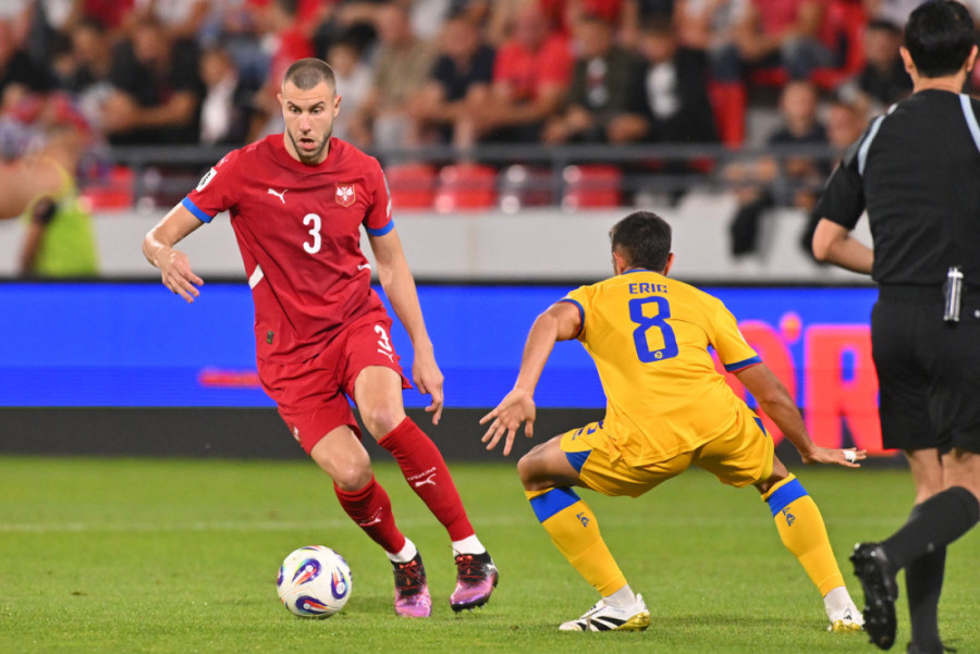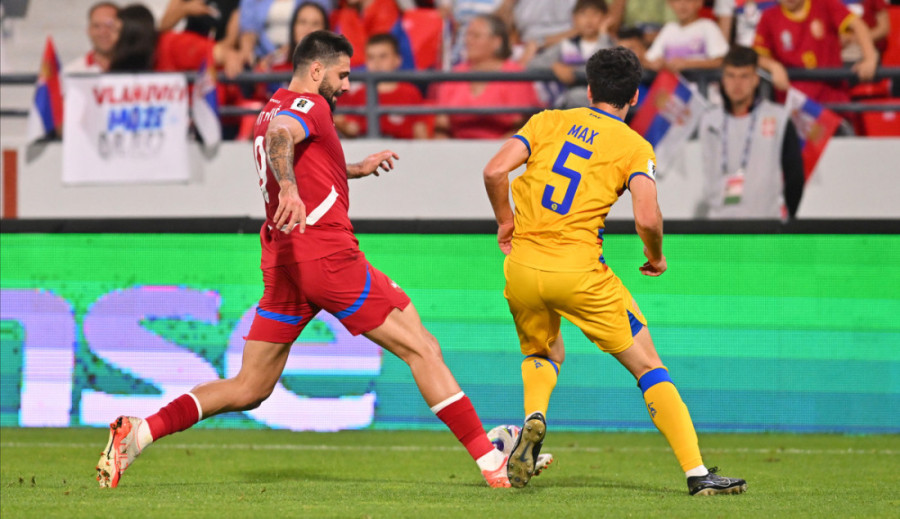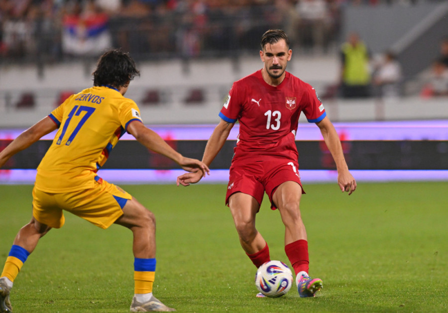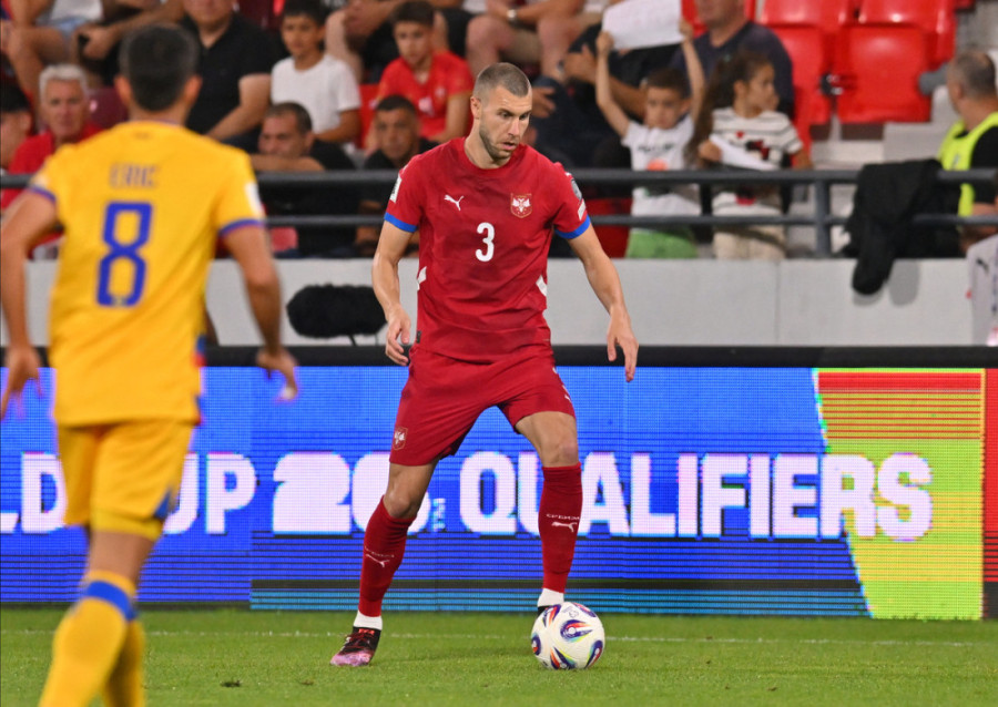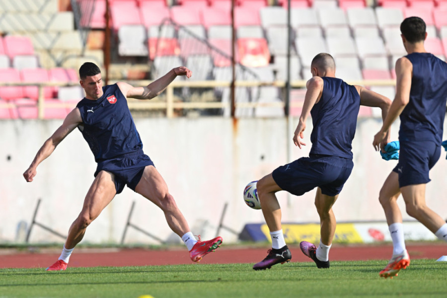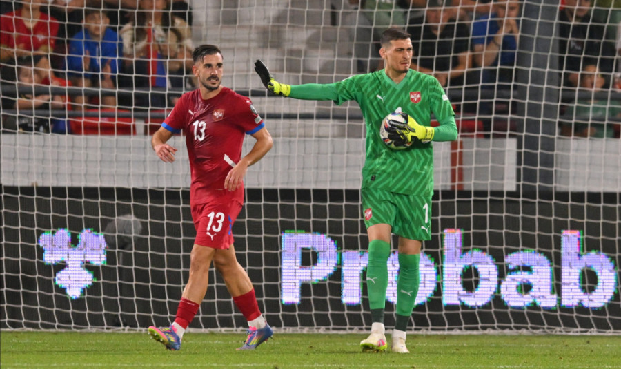 32. minut - Terzić centrira sa leve strane, uspeva Vlahović nekako da je zakači glavom, ali to nije dovoljno dobro, pošto centaršut nije bio najbolji. U svakom slučaju, nastavlja se pritisak Srbije i dominacija.