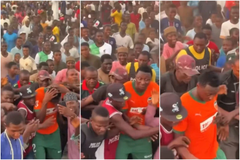 Pogledajte i kako je sve izgledalo, a možete da vidite kako ga policija pokušava da ga sprovede. Ali nisu mogli mnogo da učine koliko ga je ljudi okružilo.