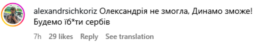 Tako su pojavila i skandalozni poziv na linč "Srbe na vrbe", ili da "Oleksandrija nije mogla, ali da Dinamo može da j**e Srbe".