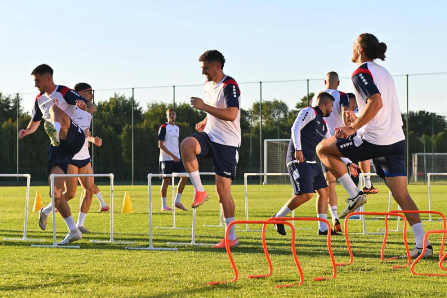 Selektor fudbalske reprezentacije Srbije Dragan Stojković Piksi je održao konferenciju na početku priprema za kvalifikacione utakmice sa Letonijom i Engleskom, a u popodnevnim časovima odrađen je i prvi trening.