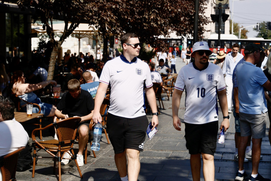 Navijači fudbalske reprezentacije Engleske okupljaju se u centru Beograda pred večerašnju utakmicu protiv Srbije u kvalifikacijama za Svetsko prvenstvo.