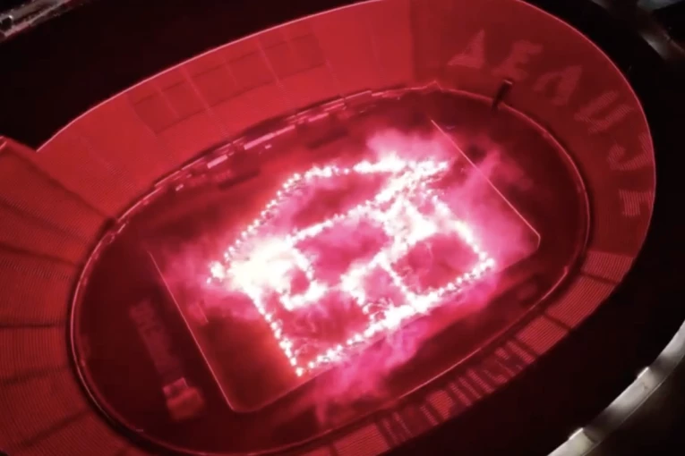 Navijači crveno-belih, „Delije“, obeležili su jubilej na originalan način – upaljenim bakljama na terenu iscrtali su oblik kuće, šaljući jasnu poruku o tome šta im znači ovaj stadion.