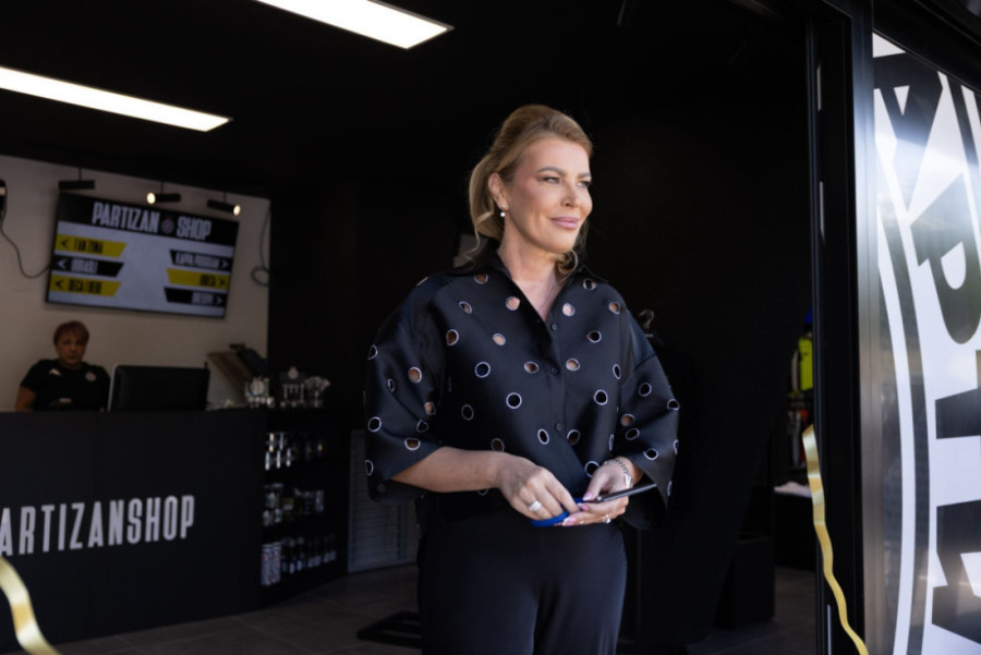 Na stadionu Partizana otvorena je renovirana prodavnica, a vrpcu je presekla potpredsednica kluba zadužena za poslovna pitanja, Milka Forcan.