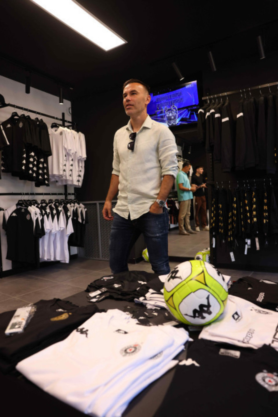 Prodavnica je tematski podeljena u dve celine, u jednoj se nalaze proizvodi kompanije Kappa tehničkog sponzor "parnog valjka", a u drugom kompletan program crno-belih. Otvaranju su prisustvovali i neki od fudbalera, između ostalih i Bibars Natho.
