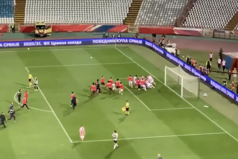 Pošto je Milan Borjan u odlučujućoj seriji odbranio šut mladog napadača crno-belih Nikole Štulića, usledilo je veliko slavlje zvezdaša, u kojem je baš preterao iskusni defanzivac srpskog prvaka Marko Gobeljić.
