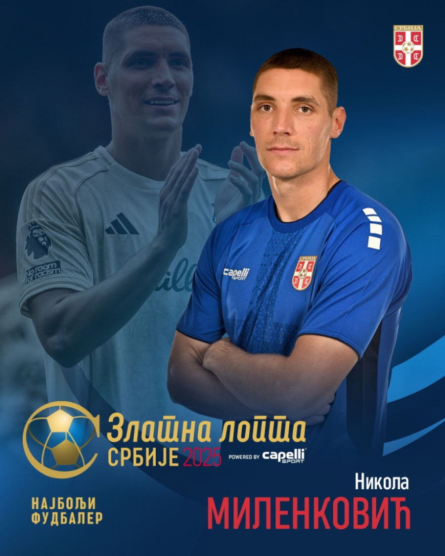 Fudbaler Notingem Foresta Nikola Milenković i selektorka ženske fudbalske reprezentacije Srbije Lidija Stojkanović dobitnici su "Zlatne lopte" Fudbalskog saveza Srbije (FSS) za 2025 godinu, objavio je nacionalni savez.
