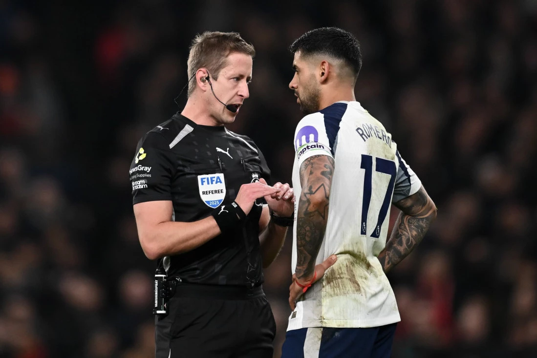 Kapiten Totenhema nije odmah napustio teren pošto je dobio crveni karton, već se raspravljao sa glavni sudijom Džonom Bruksom.