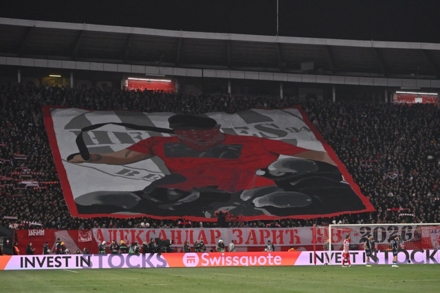 20.56 - "Na terenu i na tribini budimo pravi", to je poruka navijača Zvezde, sa severne tribine.