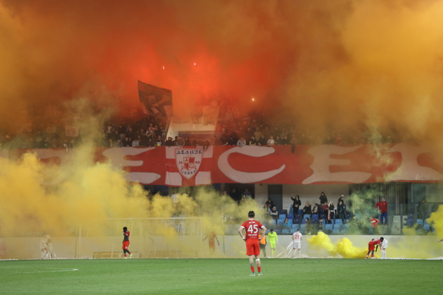 18.05 - Neće početi drugo poluvreme na vreme. Navijači Zvezde bacili papirne trake, pa treba malo vremena da se sklone. Pomažu i fudbaleri oba tima. Ima i dpmnih bombi.