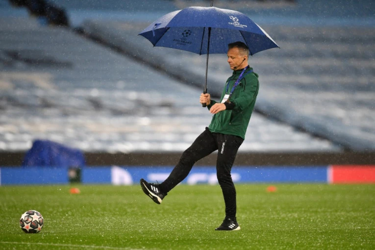 Jak olujni vetar, uz krupan grad sručio se na zeleni tepih stadiona “građana”, tako da je i glavni arbitar Holanđanin Bjern Kujpers izašao sa loptom na teren ne bi li se lično uverio da li postoje uslovi za odigravanje polufinalnog duela. Prema prvim procenama iz Engleske, očekuje se slabljenje olujnog vetra i prestanak padavina, a kako je i drenaža odlično urađena, ne postoje prepreke za odigravanje utakmice.